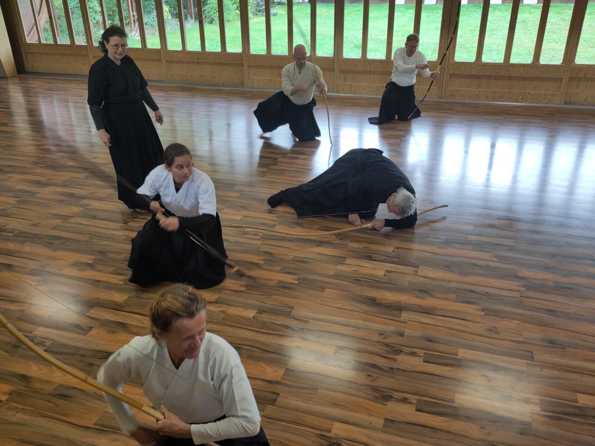 Neben Trockenübungen im Dojo und ausgiebigem Üben des kompletten Kazuya-Koshiya Kumiyumi (inklusive Flankenschutz von Omae und Ochi) konnten wir auch noch zwei neue Aspekte ausprobieren: