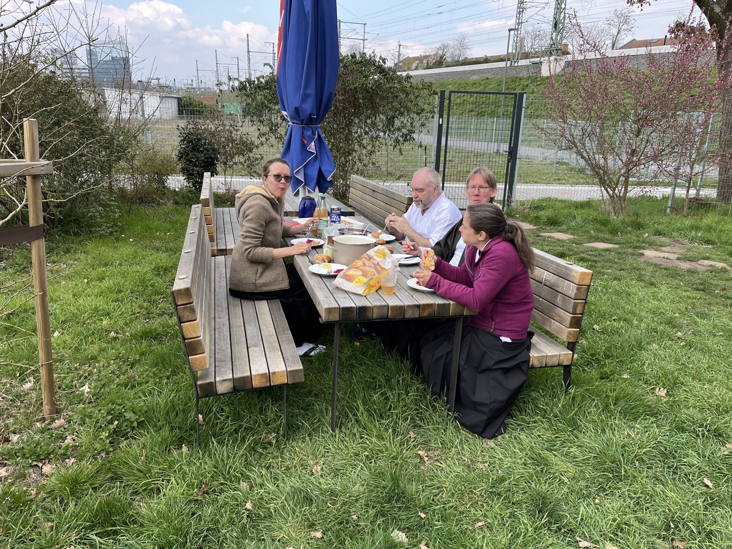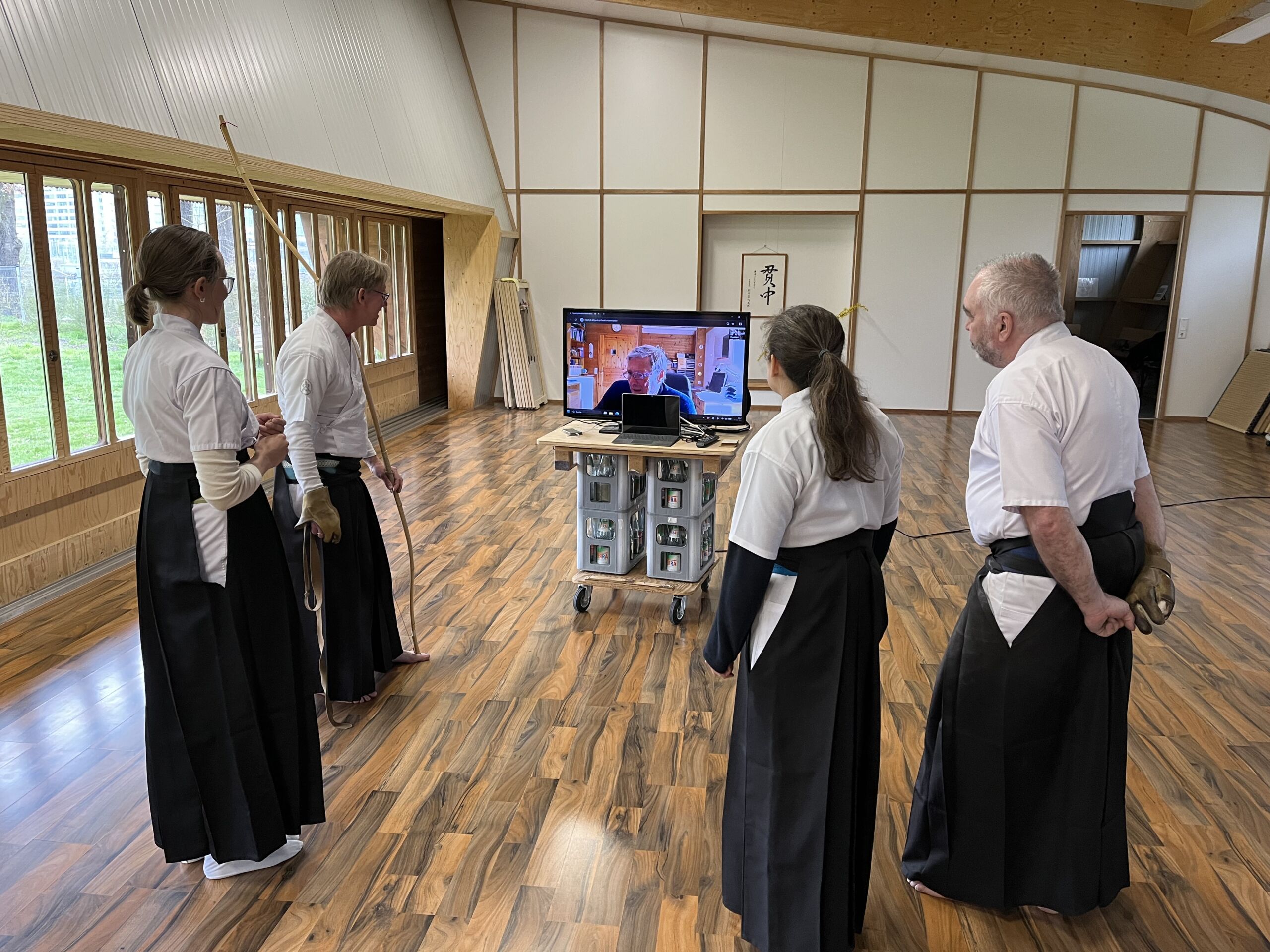 Um die Chance auf individuelle Korrektur nicht verstreichen zu lassen, haben wir ihn kurzerhand virtuell dazugeschaltet. Mit Laptop und Fernseher konnten wir erstaunlich intensiv an wichtigen Punkten arbeiten. Nur die Pause in der Sonne mit Würstchen, Salat und Kuchen konnten wir nicht teilen.